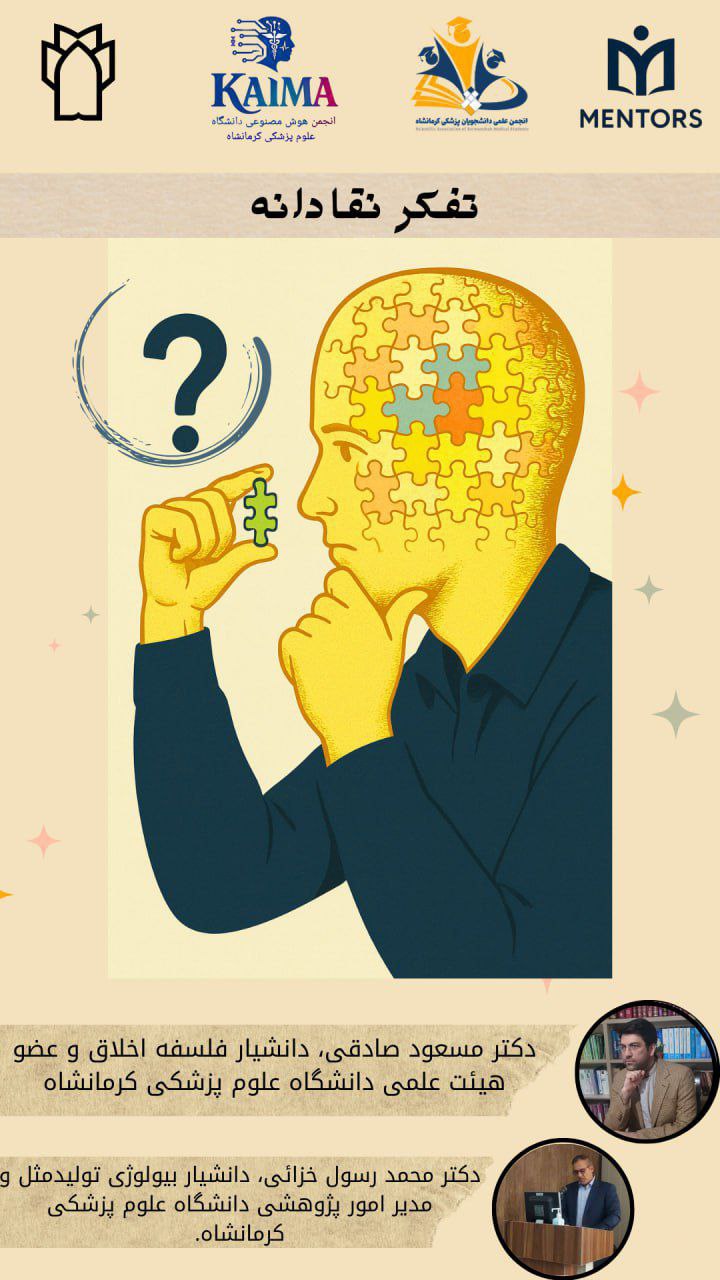 موضوع این جلسه: سوگیریهای شناختی و نقش آنها در تصمیمگیری 🗣 سخنران:دکتر مسعود صادقی | استادیار فلسفه اخلاق و عضو هیئت علمی دانشگاه علوم پزشکی کرمانشاه📆 زمان:چهارشنبه ۲ مهرماه ۱۴۰۴ | ساعت ۱۷:۰۰ 🗣 سخنران: دکتر محمد رسول خزائی٫ دانشیار بیولوژی تولید مثل و مدیر امور پژوهشی دانشگاه علوم پزشکی کرمانشاه📆 زمان:چهارشنبه ۹ مهرماه ۱۴۰۴ | ساعت۱۷:۰۰ 📍مکان:شهرکتاب کرمانشاه، چهارراه نوبهار، جنب کوچه ۱۰۵ 👥 حضور برای عموم دانشجویان و علاقهمندان آزاد است